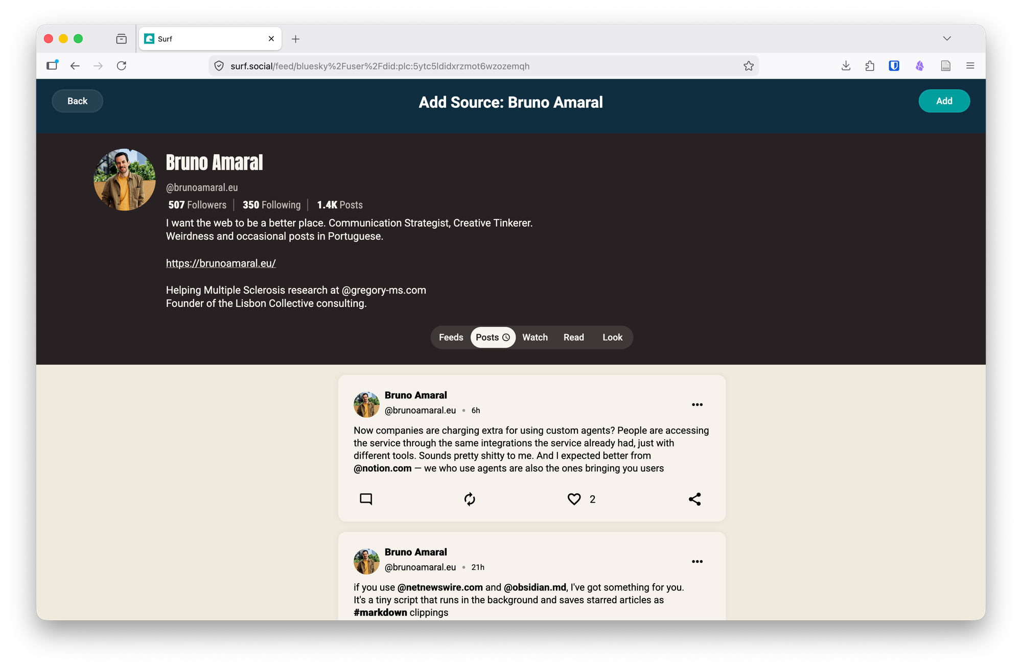 Lately I have seen some talk about Surf, a new site by Flipboard that tries to organise all the sites we want to track. I don't have an opinion yet, but it looks nice.